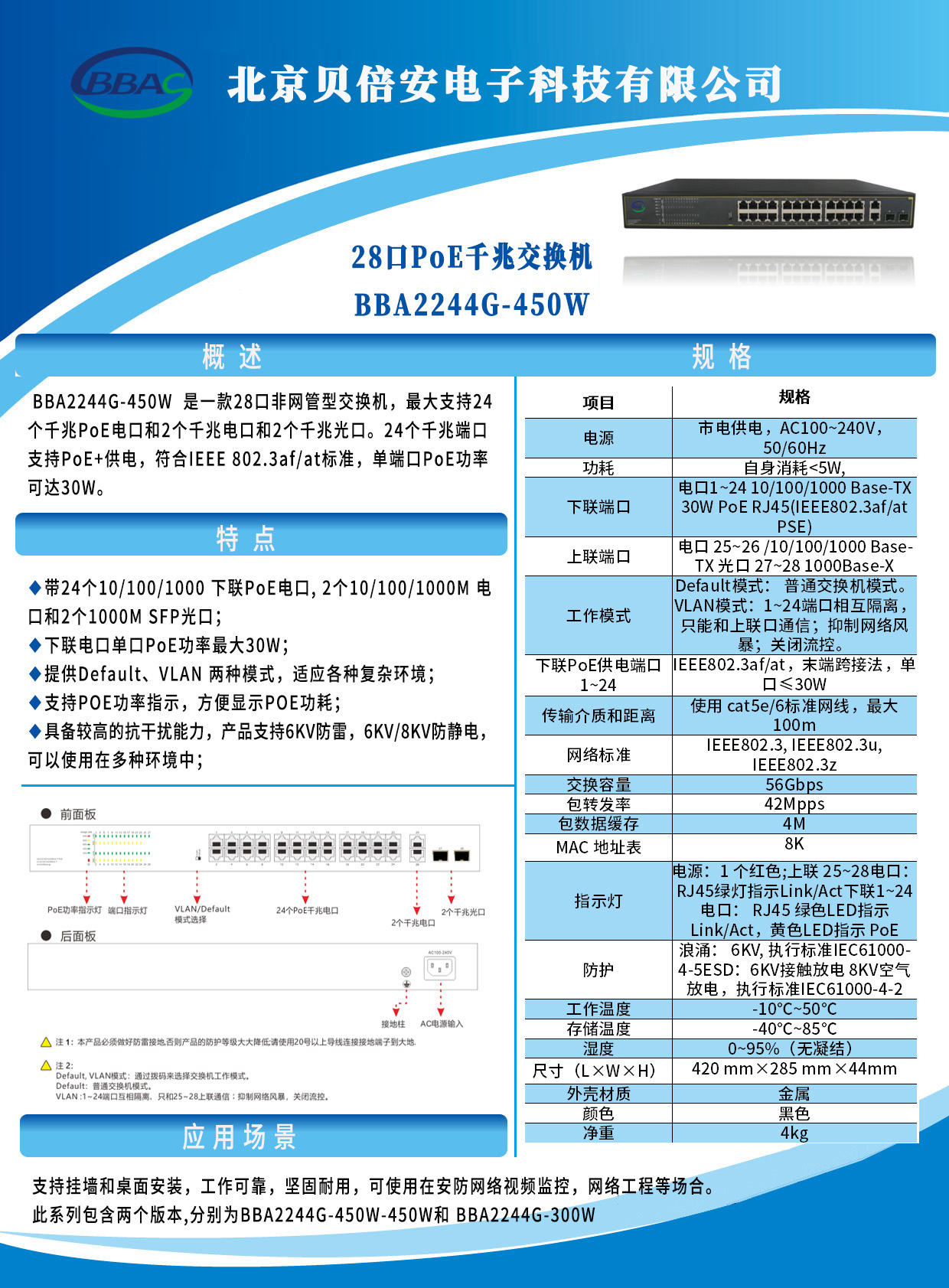 28口PoE千兆交換機 24百兆國標PoE + 2千兆上聯電口+2千兆光口; 1-24端口支持10M/250米長距離 ;一鍵vlan模式;default正常傳輸;支持PoE功率指示;